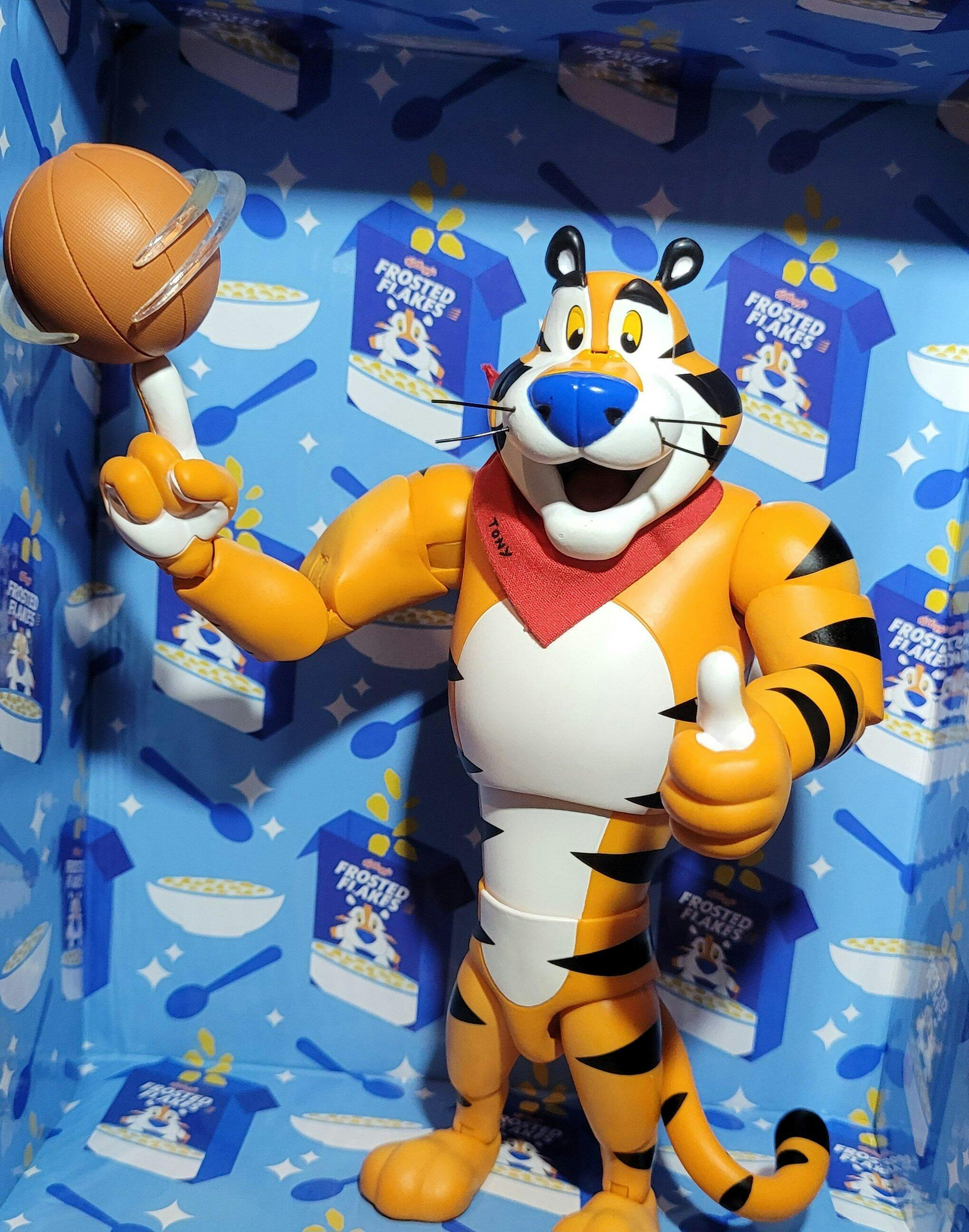 This Tony the Tiger 6-inch scale action figure is GRRREAT! Bring the iconic mascot of breakfast champions to your collection with the Kellogg’s Frosted Flakes Tony the Tiger 1:12 scale action figure by Jada Toys! This highly detailed collectible captures the larger-than-life personality of Tony the Tiger, the beloved cereal icon who has been inspiring generations with his great attitude and unstoppable energy. Expertly designed in 1:12 scale, this figure showcases Tony’s athletic build, vibrant orange fur and signature red ascot. With incredible articulation, you can pose him in dynamic poses that embody his enthusiastic spirit - whether he’s flexing his strength, pointing in encouragement, or giving an uplifting thumbs-up. This set includes multiple accessories to bring Tony’s energetic personality to life, including interchangeable hands, a Kellogg’s Frosted Flakes cereal box, a bowl of Kellogg’s Frosted Flakes with spoon, and a basketball with a spinning effect piece - perfect for recreating his legendary commercials. Packaged in a premium box designed to look like an actual box of Kellogg’s Frosted Flakes, this collectible blends nostalgia with high-quality craftsmanship.